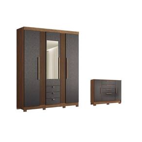 Guarda Roupa +1Cômoda QC237 Jatobá/Grafite - Santos Andirá
