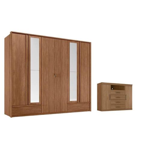 GUARDA ROUPA CASAL 6 PORTAS (2 C/ ESPELHO) E 5 GAVETAS DEMOCRATA JATOBÁ - SANTOS ANDIRÁ