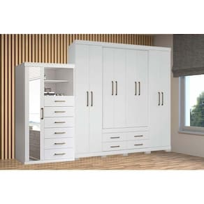 Guarda Roupa Casal 8 Portas e 4 Gavetas com Pés Nápoles Branco