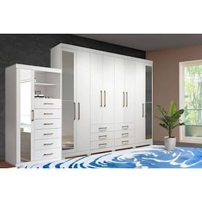 Guarda Roupa Casal 8 Portas (2 com Espelho) e 6 Gavetas com Pés Master 8.6 Branco