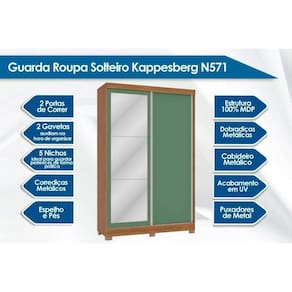 Dimensões(Cm): Comprimento(Profundidade): 53cm x Largura: 143cm x Altura: 223cm Material de Estrutura - Estrutura 100% MDP Tipo de Pintura - Ultravioleta Tipo de Acabamento da Pintura - Semi Brilho Tipo de Modulado - Ângulo Reto Diferenciais dos Móveis de Quarto - Color Flex Tipo de Cabideiro - Aéreo Material dos Cabideiros - Cabideira Metálico Tipo de Dobradiças - Dobradiças Metálicas Quantidade de Portas - 2 Portas de Correr Tipo de Corrediça - c/ Corrediças Metálicas Quantidade de Gavetas - 2 Gavetas Quantidade de Prateleiras - 4 Quantidade de Nichos - 5 Nichos Montagem do Produto - Desmontável Certificação de Qualidade - Qualidade Aprovada Garantia - Garantia Kappesberg 90 Dias