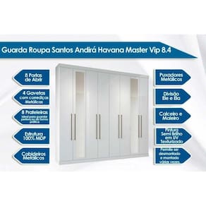 Guarda Roupa Casal 8 Portas (2 c/ Espelho) e 4 Gavetas c/ Pés Master Vip 8.4 Branco - Santos Andirá