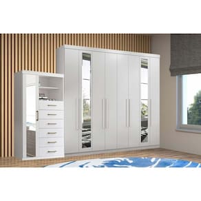 Guarda Roupa Casal 8 Portas (2 c/ Espelho) e 4 Gavetas Master New 8.4 Branco - Santos Andirá