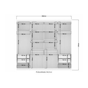 Dimensões(Cm): Comprimento(Profundidade): 46,3cm x Largura: 238,8cm x Altura: 219cm Tamanho dos Acessórios - Casal Material de Estrutura - Estrutura 100% MDP Espessura Material da Estrutura (mm) - Espessura 15mm Tipo de Pintura - Ultravioleta Tipo de Acabamento da Pintura - Semi Brilho Tipo de Acabamento - Acabamento Baixo Relevo Tipo de Modulado - Kit Espelho Tipo de Moldura do Guarda Roupa - Moldura Robusta com Encabeçamento no Topo Tipo de Rodapé - Rodapés em MDF Diferenciais Guarda Roupas - Calceiro - Sapateira - Maleiro - Divisão Ele/Ela Material do Calceiro - Calceiro Metálico Tipo de Cabideiro - Aéreo Material dos Cabideiros - Cabideira Metálico Tipo de Porta do Guarda-Roupa - Portas de Bater Material das Portas - Portas em MDP Tipo de Dobradiças - Dobradiças Metálicas Diferenciais das Portas - Porta c/ Espelho Quantidade de Portas - 8 Portas de Abrir Quantidade de Portas com Espelho - 2 Portas com Espelho Tipo de Espelho - Espelho Externo Quantidade de Espelhos - 4 Espelhos Material das Gavetas - Gavetas em MDP Tipo de Corrediça - c/ Corrediças Telescópicas Quantidade de Gavetas - 4 Gavetas Material das Prateleiras - Prateleiras em MDP Quantidade de Prateleiras - 10 Quantidade de Nichos - 2 Nichos Recomendações de Uso - Recomendações de Uso Montagem do Produto - Desmontável - Necessita de montagem - c/ Opções de Montagem - Acompanha Manual de Instalação e Montagem - Complexidade da Montagem Média - Necessita de Ferramentas para Realizar a Montagem Sistema de Montagem - Inclui kit de instalação Certificação de Qualidade - Qualidade Aprovada Nossa Avaliação - Classificação de Qualidade Excelente Garantia - 3 meses Tipo de Puxador - MDF