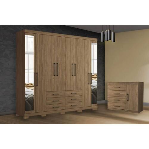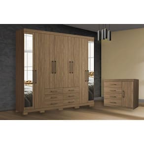 Dimensões(Cm): Comprimento(Profundidade): 46cm x Largura: 238,80cm x Altura: 223cm Material de Estrutura - Estrutura 100% MDP Tipo de Pintura - Ultravioleta - Texturizada Tipo de Acabamento da Pintura - Semi Brilho Diferenciais Guarda Roupas - Maleiro - Divisão Ele/Ela Material dos Cabideiros - Cabideira Metálico Quantidade de Portas - 8 Portas de Abrir Tipo de Corrediça - c/ Corrediças Metálicas Quantidade de Gavetas - 6 Gavetas Tipo dos Pés - ABS/PVC Quantidade de Prateleiras - 10 Montagem do Produto - Desmontável Garantia - 3 meses