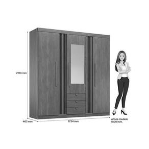 Dimensões(Cm): Guarda Roupa Solteiro 3 Portas (1 c/ Espelho) e 3 Gavetas Aurora 3.3 Comprimento(Profundidade): 46,3 cm Largura: 173,4 cm Altura: 219 cm