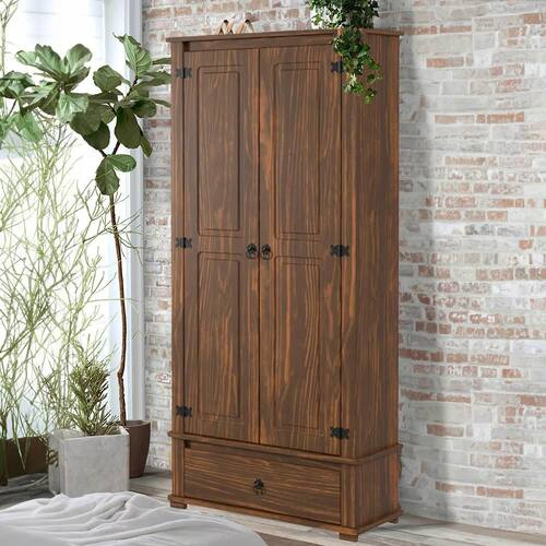 Apresentamos o Guarda-Roupa Rústico, uma peça que combina funcionalidade e elegância. Confeccionado em madeira maciça de pinus, este guarda-roupa oferece durabilidade e resistência, além de ser ecologicamente correto. Equipado com duas portas e uma gaveta espaçosa com corrediças de madeira, ele proporciona amplo espaço de armazenamento e fácil acesso aos seus pertences. As dobradiças e puxadores mexicanos adicionam um charme artesanal autêntico, enquanto as quatro divisórias internas garantem a organização perfeita dos seus objetos. Finalizado com uma pintura UV de brilho semi fosco, este guarda-roupa rústico é a escolha ideal para quem busca unir tradição e estilo em um único móvel. Transforme seu espaço com essa peça única e funcional.