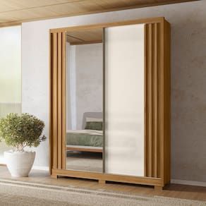 Guarda-Roupa 2 Portas 3 Gavetas Com Espelho Moval Colorado - Bege Médio