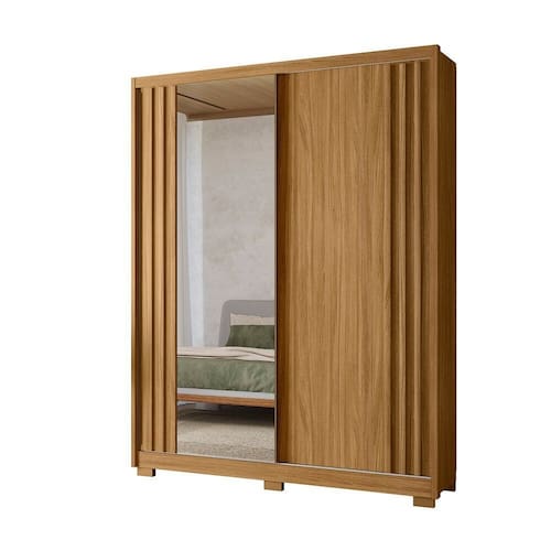 Caracteristicas do produto: Modelo: Colorado Matéria-prima: MDP Revestimento: UV/Relevo Fosco Portas: 02 portas de correr Trilhos: Alumínio Gavetas: 03 gavetas Corrediças: Telescópicas Prateleiras: 07 prateleiras Vidro :3 mm Cabideiros: 02 cabideiros Sapateira: 01 Pés :PVC Altura dos pés: 7 cm