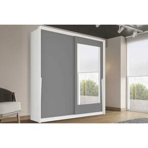 Guarda Roupa 2 Portas de Correr (1 c/ espelho) e 2 Gavetas Porto Branco/Cinza - Politorno - Blush