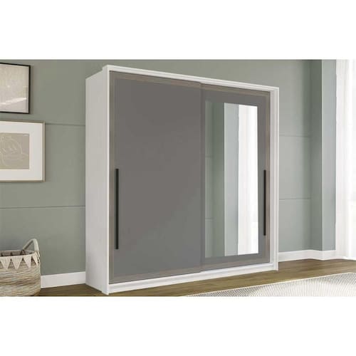 Guarda Roupa Casal 2 Portas de Correr (1 c/ espelho) e 2 Gavetas Valência Branco/Cinza - Politorno