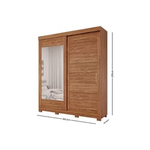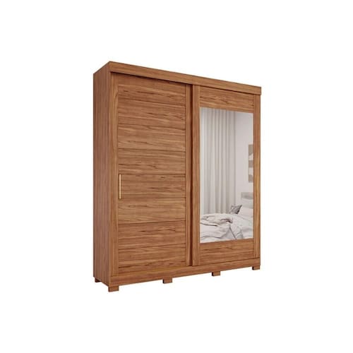 Guarda Roupa Casal 2 Portas de Correr (1 c/ Espelho) e 3 Gavetas c/ Pés Flora Cinamomo - Panan