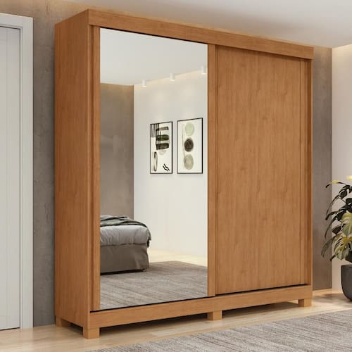 Guarda-Roupa Easy Light com Portas Deslizantes e Espelho Design Moderno e Funcionalidade em Cada Detalhe. Transforme seu quarto com este guarda-roupa que une sofisticação, praticidade e excelente aproveitamento de espaço. Produzido em MDP e MDF, pintura UV com acabamento em micro textura, proporcionando um toque aveludado e sofisticado materiais de alta durabilidade, ele conta com 2 portas deslizantes em dupla face, sendo uma delas com espelho inteiriço, ideal para ampliar o ambiente e facilitar o dia a dia. Você pode personalizar as cores das portas, escolhendo a combinação que mais combina com seu estilo e decoração. As portas contam ainda com freios para fechamento suave e seguro e encabeçamento reforçado em MDF de 25 mm, garantindo resistência e um acabamento elegante. O espaço interno é um grande diferencial: são 8 nichos bem distribuídos, espaço dedicado para sapatos, 2 gavetas com corrediças telescópicas e distanciadores em MDF, além de um cabideiro em alumínio, perfeito para manter suas roupas sempre organizadas. As costas inteiriças proporcionam maior estabilidade e robustez ao móvel. Para mais praticidade e proteção, o guarda-roupa conta com 6 pés em PVC com 7 cm de altura, que facilitam a limpeza e ajudam na conservação do móvel.Medidas do produto:Altura: 215 cmLargura: 180 cmProfundidade: 52 cm. Ideal para quem busca um móvel moderno, versátil e com excelente custo-benefício. Escolha sua combinação de cores e leve praticidade e beleza para o seu quarto!