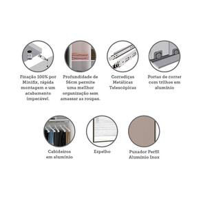 O Guarda Roupa Modulado Prime foi desenvolvido se adequando a vários espaços, de grandes a pequenos. Possui 236 cm de altura oferece divisórias para atender diversas necessidades, profundidade de 56cm possibilitando acomodar roupas sem amassar. Produzido em MDP de 15mm, duas portas de correr com trilhos em alumínio, corrediças telescópicas, a montagem é inteira por minifix que proporciona um acabamento impecável e fundos embutidos com perfil usinado para melhor acabamento e maior resistência.