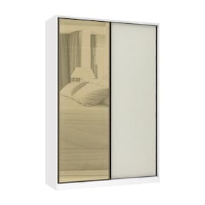 Guarda Roupa 2 Portas de Correr 3 Gavetas 159cm com Vidro Reflecta Bronze Prime Luciane Móveis - Bege Claro