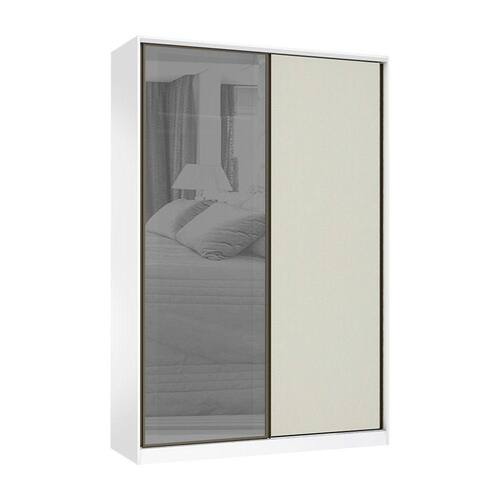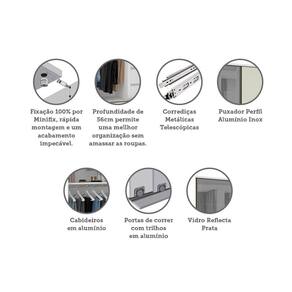 Guarda Roupa 2 Portas de Correr 3 Gavetas 159cm com Vidro Reflecta Prata Prime Luciane Móveis