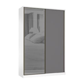 Guarda Roupa 2 Portas de Correr 3 Gavetas 159cm com Vidro Reflecta Prata Prime Luciane Móveis - Cinza