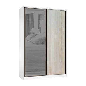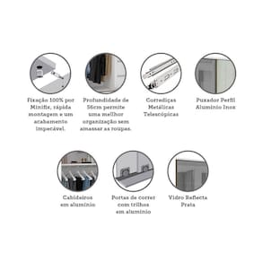 Guarda Roupa 2 Portas de Correr 3 Gavetas 159cm com Vidro Reflecta Prata Prime Luciane Móveis
