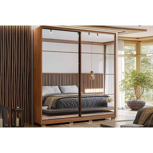 Guarda Roupa 2 Portas De Correr 3 Gavetas C/ Espelho E Pés Belga Amêndola Touch - Demóbile