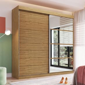 Um Guarda-roupa para transformar o seu ambiente. Com 2,40m de largura e 2,34m de altura tem muito espaço de organização. Suas portas de correr garantem aproveitamento do espaço do seu quarto, e a montagem flex das portas permite que você escolha a melhor composição entre as cores naturalle e cristalo. Acompanha ainda espelhos para otimizar ainda mais o espaço. Com 4 gavetas internas, com corrediças telescópicas, cabideiros e puxadores em alumínio, a qualidade do seu produto é garantida. São três maleiros, dois cabideiros e um total de quinze nichos para deixar tudo organizado. Um roupeiros lindo e funcional.