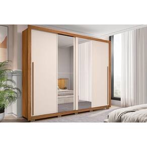 Guarda Roupa 2 Portas De Correr C/ Espelho E 4 Gavetas Praticus Lux Freijo/off White - Caemmun