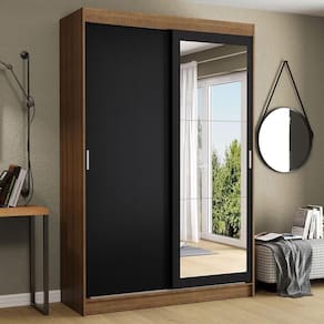 Os materiais utilizados são de alta qualidade, com duas portas de correr com deslizamento suave e puxadores em alumínio, dobradiças metálicas e trilho superior e inferior em alumínio. Além disso, uma das portas conta com espelhos que são muito úteis no dia a dia.