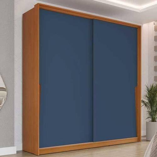 Guarda Roupa Casal 2 Portas de Correr e 2 Gavetas Porto Freijo/Azul - Politorno