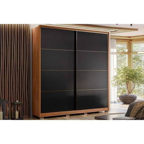 Guarda Roupa 2 Portas De Correr E 3 Gavetas C/ Pés Belga Nogueira/nogueira Ou Preto - Demóbile