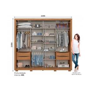 Material do Calceiro - Calceiro Metálico Tipo de Cabideiro - Aéreo Material dos Cabideiros - Cabideira Metálico Material das Portas - Portas em MDP Material do trilho da porta de correr - Trilho Metálico - Trilho Superior Metálico Tipo de Dobradiças - Dobradiças Metálicas Diferenciais das Portas - Portas c/ Grafismo Quantidade de Portas - 2 Portas de Correr Material das Gavetas - Gavetas em MDP Tipo de Corrediça - c/ Corrediças Telescópicas Quantidade de Gavetas - 4 Gavetas Diferenciais das Gavetas - c/ Detalhe Usinado Tipo dos Pés - Pés em ABS Quantidade de Pés - 8 pés Material das Prateleiras - Prateleiras em MDP Quantidade de Prateleiras - 8 Quantidade de Nichos - 2 Nichos
