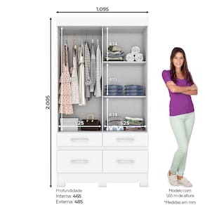 Guarda Roupa 2 Portas Deslizantes 4 Gavetas BE25 Briz - Branco