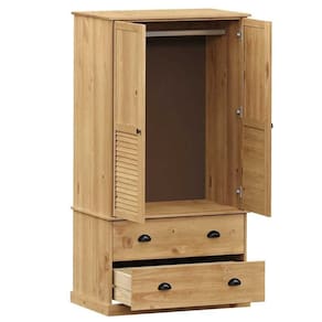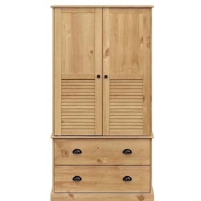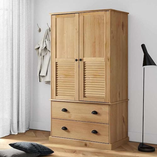 Organize seu quarto com elegância e praticidade usando o guarda-roupa de madeira natural com 2 portas e 2 gavetas. Com acabamento em tom amadeirado claro e detalhe ripado decorativo nas portas, este móvel oferece um visual rústico e sofisticado que combina com diversos estilos de decoração.