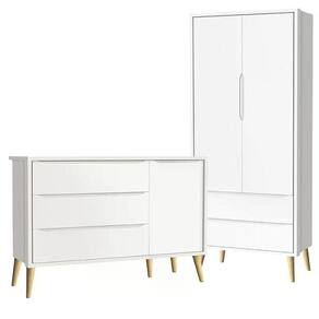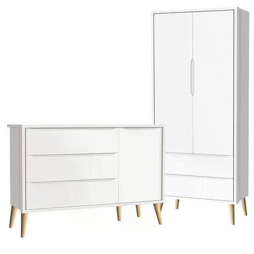 Guarda Roupa 2 Portas E Cômoda Com Porta Theo Branco Fosco Pés Madeira Natural - Reller Móveis Branco Fosco Guarda Roupa Infantil Theo 2 Portas - Reller Móveis - 100 % MDF - 02 Portas; - 02 Gavetas; - 03 Divisões Internas; - Cabideiro Metálico; - Corrediças Telescópicas; - Maior Organização, espaço e praticidade; - Puxadores embutido; - Acabamento UV (Atóxico); - Pés Pontiagudos em Madeira; Cômoda Infantil Theo - Reller Móveis - Desenvolvido em MDF - 03 Gavetas - 01 Porta lisa - 01 Prateleiras interna - Corrediças Telescópicas - Cabideiro Metálico - Maior Organização e Praticidade - Puxadores embutido - Acabamento UV (Atóxico); - Pés Pontiagudos em Madeira;