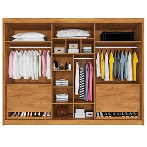 O Guarda Roupa 2 Portas Ripadas nas Laterais Potente MDF - Móveis Europaune praticidade, espaço e elegância em um só item. Seu design moderno é acentuado pelas portas ripadas de madeira, complementado por um acabamento em Verniz UV que proporciona uma escala de brilho semi-brilho e uma durabilidade excepcional. Fabricado em 100% MDF (Madeira de Reflorestamento), o Guarda Roupas destaca-se pelas suas 6 portas elegantes com grandes puxadores em madeira e 6 gavetas internas, uma dessas gavetas possuem chave, oferecendo segurança adicional para seus itens mais preciosos e são equipadas com puxadores modernos. O Guarda Roupas inclui ainda 2 sapateiras com corrediças telescópicas, prateleiras espaçosas e cabideiros em alumínio, garantindo um excelente aproveitamento dos espaços internos e alta durabilidade. Para maior resistência e durabilidade, o móvel conta com costas parafusadas.