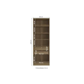 Acabamento: Pintura Brilho / Pintura Touch | Acabamento da Fita Borda: Papel | Cor: Nogueira/Macadâmia | Corrediças: Telescópicas | Dobradiça: Com Amortecimento | Garantia: 3 meses para defeito de fabricação | Gavetas: Internas | Matéria-prima: MDP | Peso suportado por cada prateleira: 7 kg | Puxadores: MDF Revestido | Quantidade de gavetas: 2 | Quantidade de portas: 2 | Quantidade de prateleiras: 4 | Sistema de montagem: Parafuso Philips / Parafuso Philips e Minifix | Tipo de porta: Bater