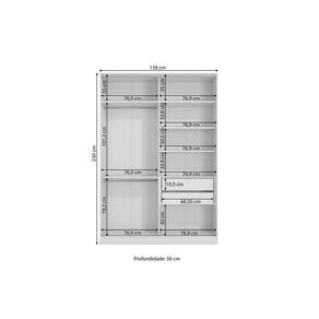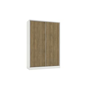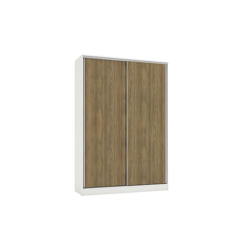 Acabamento: Pintura Brilho / Pintura Touch | Acabamento da Fita Borda: Papel | Cor: Branco/Nogueira | Corrediças: Telescópicas | Garantia: 3 meses para defeito de fabricação | Gavetas: Internas | Matéria-prima: MDP | Peso suportado por cabideiro: 10 | Peso suportado por cada prateleira: 7 kg | Puxadores: Alumínio | Quantidade de calceiros: 2 | Quantidade de gavetas: 2 | Quantidade de portas: 2 | Quantidade de prateleiras: 6 | Sistema de montagem: Parafuso Philips / Parafuso Philips e Minifix | Tipo de porta: Correr
