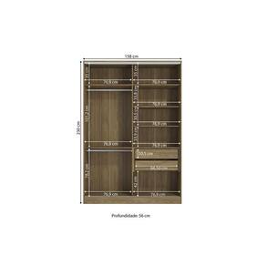 Acabamento: Pintura Brilho / Pintura Touch | Acabamento da Fita Borda: Papel | Cor: Nogueira/Branco | Corrediças: Telescópicas | Garantia: 3 meses para defeito de fabricação | Gavetas: Internas | Matéria-prima: MDP | Peso suportado por cabideiro: 10 | Peso suportado por cada prateleira: 7 kg | Puxadores: Alumínio | Quantidade de calceiros: 2 | Quantidade de gavetas: 2 | Quantidade de portas: 2 | Quantidade de prateleiras: 6 | Sistema de montagem: Parafuso Philips / Parafuso Philips e Minifix | Tipo de porta: Correr