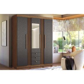 Guarda Roupa 3 Portas (1 c/ Espelho) e 3 Gavetas c/ Pés Aurora 3.3 Jatobá/Grafite - Santos Andirá - Cinza