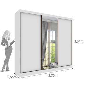 Guarda Roupa 3 Portas 270cm California Espresso Móveis - Produto em MDP e MDF com 3 portas, sendo a porta central com espelho inteiriça peliculada, perfil puxador e perfil testeira em alumínio, 2 cabideiros e 1 calceiro, trilhos superior e inferior em alumínio, 6 gavetas com puxadores e corrediças telescópicas, fornecendo maior praticidade e segurança ao produto, possibilitando um deslizamento suave, firme e silencioso, distanciadores em MDF, 5 prateleiras para acomodar e organizar melhor suas roupas e objetos. Espaço de armazenagem extenso e bem distribuído, roldanas com rolamento.