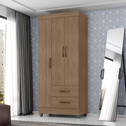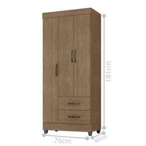 Feito em MDP. Contém 3 portas, 1 cabideiro em alumínio, 2 gavetas com amplo espeço interno e com corrediças metálicas para uma melhor abertura e delizamento.