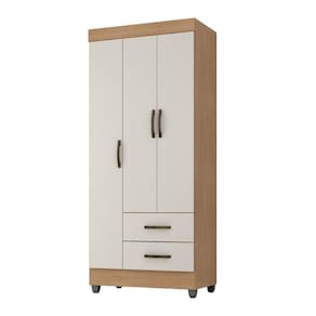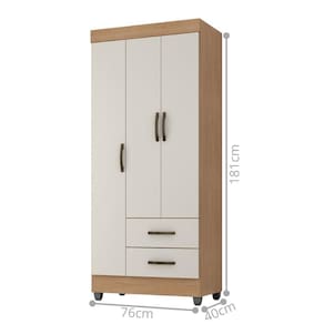 Feito em MDP. Contém 3 portas, 1 cabideiro em alumínio, 2 gavetas com amplo espeço interno e com corrediças metálicas para uma melhor abertura e delizamento.