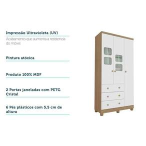 Guarda Roupa Infantil c/ 3 Portas (2 Cristal) e 3 Gavetas Uli Branco/Amendoa - Peroba