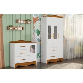 Guarda Roupa Infantil Clara c/ 3 Portas e 2 Gavetas Branco - Peroba