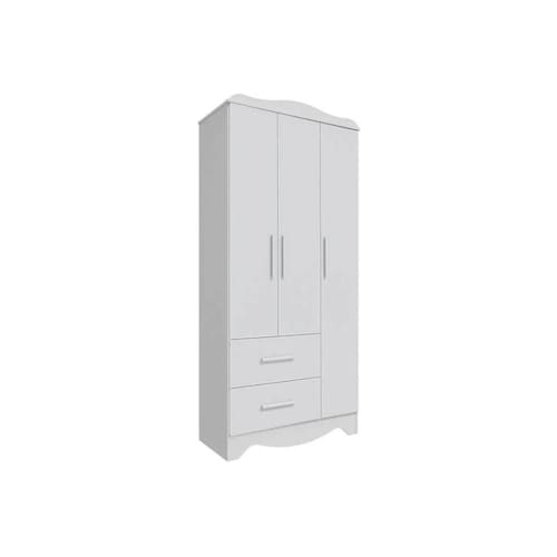 Guarda Roupa 3 Portas Clara C/ Lisa E 2 Gavetas Branco - Peroba