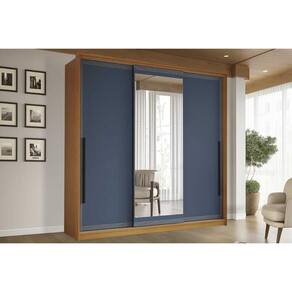 Guarda Roupa 3 Portas de Correr (1 c/ espelho) e 4 Gavetas Valência Freijo/Azul - Politorno - Blush
