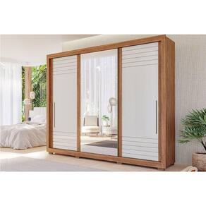 Guarda Roupa Casal 3 Portas de Correr (1 c/ Espelho) e 6 Gavetas Vitória Cinamomo/Off White - Panan