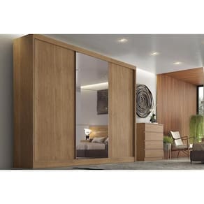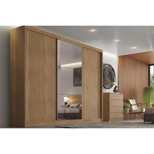 Guarda Roupa 3 Portas De Correr (1 C/ Espelho) E 8 Gavetas Natus/duna Cumaru - Novo Horizonte