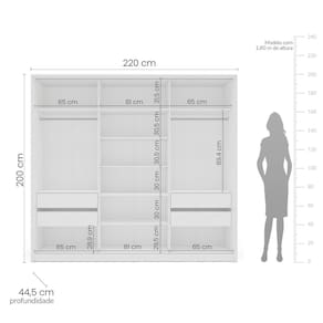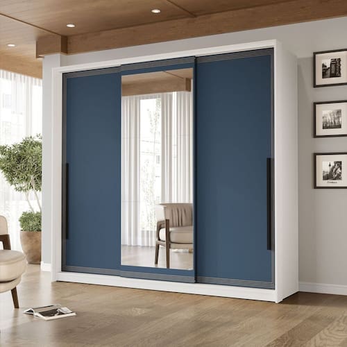 O guarda-roupa 3 portas 4 gavetas da linha Valência, da Politorno Móveis, é ideal para quem busca espaço, praticidade e sofisticação. Com 200 cm de altura, 220 cm de largura e 44,5 cm de profundidade, oferece ampla capacidade de organização para roupas, calçados e acessórios. As portas de abrir proporcionam fácil acesso, enquanto as 4 gavetas, com corrediças telescópicas, garantem deslizamento suave e preciso. Fabricado em MDP/MDF com acabamento em pintura UV e FF, é resistente e durável. O espelho embutido agrega sofisticação ao móvel, enquanto os puxadores externos e detalhes usinados completam o visual elegante, tornando-o perfeito para um quarto funcional e sofisticado. Acabamento da Prateleira: Pintura UV Escala de Brilho da Prateleira: Semi-Fosco Acabamento da Gaveta: Pintura UV Escala de Brilho da Gaveta: Semi-Fosco Material do Puxador da Gaveta: MDF Possui Organizador de Gaveta: Não Acabamento da Porta: Pintura UV Escala de Brilho da Porta: Semi-Fosco Material do Puxador da Porta: MDF Acabamento dos Pés: Finish Foil Altura do Espelho: 143 cm Altura dos Pés: 0,37 cm Altura Máxima dos Pés: 0.3700 Ambiente Principal: Quarto codigo_ean: 7900288116673 Complexidade da Montagem: Média: pode ser montado por mais de uma pessoa e/ou necessite de maior conhecimento para montagem Cor: Branco/Azul Cor do Produto: Branco/Azul Cor do Puxador: Preto Cor Interna: Branco Escala de Brilho: Semi-Fosco Espessura da Estrutura (mm): 15 mm Espessura das Portas (mm): 15 mm Espessura das Prateleiras (mm): 15 mm Espessura do Espelho: 3 mm Espessura do Fundo (mm): 3 mm Espessura do Fundo das Gavetas (mm): 3 mm Fita Integrada: Sim Formato do Espelho: Retangular Gaveta com Chave: Não Itens Inclusos: 1 Guarda-Roupa, Kit de Ferragens, Manual de Montagem e Termo de Garantia Largura do Espelho: 56 cm Linha ou Coleção: Valência Manual de Montagem e Instalação: https://product-hub-prd.madeiramadeira.com.br/984463/documents/1950a149-4565-4d52-aaea-f55e706390602806906622417440517835224.pdf Marca: Politorno Material da Gaveta: MDF/MDP Material da Porta: MDF/MDP Material da Prateleira: MDF/MDP Material dos Pés: MDF Material Principal: MDF/MDP modular: Não Necessita Montagem: Sim Origem do Produto: Nacional Peso: 130,19 kg Peso Máximo por Gaveta: 5 kg Peso Máximo por Prateleira: 10 kg Possui Calceiros: Não Possui Espelho: Sim Possui Pés: Rodapé Possui Portas: Sim Possui Prateleiras: Sim Produto Montado: Sim Quantidade de Espelho: 03 Espelhos com Tamanhos Iguais Quantidade de Gavetas: 04 Gavetas Quantidade de Portas com Espelhos: 1 Porta com Espelho Quantidade de Prateleiras: 05 Prateleiras Recomendações de Uso, Manutenção e Limpeza: Utilize um pano macio umedecido com água e sabão neutro, seguido de pano seco. Não utilize produtos químicos ou abrasivos para limpeza, pois estes danificam o revestimento do móvel. Sapatas Niveladoras: Não Sistema de Montagem: Cavilha, Parafuso, Minifix e prego Tipo de Corrediça da Gaveta: Metálica Telescópica Tipo de Dobradiça/Corrediça da Porta: Alumínio Tipo de Fixação do Espelho: Fita Dupla Face Tipo de Gaveta: Interna Tipo de Guarda-Roupa: Casal Tipo de Puxador da Gaveta: Externo Tipo de Puxador da Porta: Externo