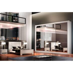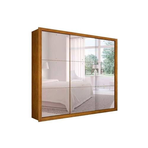 Guarda Roupa Casal 3 Portas de Correr c/ Espelho e 4 Gavetas Veneza Gold Naturale - Rufato
