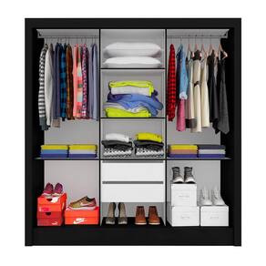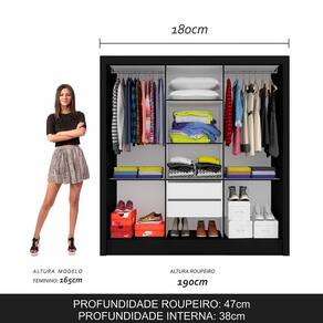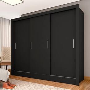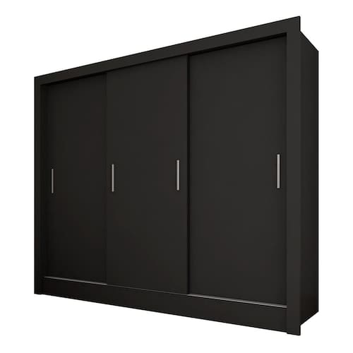 Materiais - MDP - Corrediças metálicas - Puxadores em polietileno - Cabideiros em madeira - Pintura em FF Fosco (Finish Foil) - Tonalidade: Preto