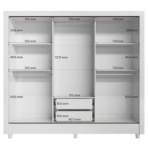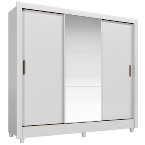 precisa ocupar aquele espaço pequeno dentro do quarto e precisa de funcionalidade. Possui 2 amplas gavetas internas com corrediças metálicas. Cabideiros em alumínio e muitas prateleiras. Para a abertura das suas portas, conta com puxadores em ABS, com design moderno e bonito. O acabamento é em verniz brilhante, tudo feito dentro dos padrões de preservação do meio ambiente, com sustentabilidade. As portas são em 15cm e deslizam sobre trilhos de alumínio. Possui pés em PVC, permitindo que o guarda-roupa fique elevado do chão, facilitando a limpeza embaixo dele. Espelhos na porta central são opcionais. Design moderno e com muita delicadeza para compor aquele quarto dos sonhos! Acabamento da Prateleira: Pintura Escala de Brilho da Prateleira: Brilhante Possui Cabideiros: Sim Acabamento da Gaveta: Verniz Escala de Brilho da Gaveta: Brilhante Possui Organizador de Gaveta: Não Acabamento da Porta: Verniz Escala de Brilho da Porta: Brilhante Material do Puxador da Porta: ABS Acabamento dos Pés: Poliéster Altura do Espelho: 53 cm Altura dos Pés: 7 cm Altura Máxima dos Pés: 7.0000 Ambiente Principal: Quarto codigo_ean: 7900288255884 Complexidade da Montagem: Média: pode ser montado por mais de uma pessoa e/ou necessite de maior conhecimento para montagem Cor: Branco Cor da Porta: Branco Cor do Produto: Branco Cor do Puxador: Bege Cor Interna: Branco Escala de Brilho: Brilhante Espessura da Estrutura (mm): 12 mm Espessura das Portas (mm): 15 mm Espessura das Prateleiras (mm): 12 mm Espessura do Espelho: 3 mm Espessura do Fundo (mm): 2,5 mm Espessura do Fundo das Gavetas (mm): 2,5 mm Fita Integrada: Sim Formato do Espelho: Quadrado Gaveta com Chave: Não Guarda-Roupa Suporta Até (kg): 77 kg Itens Inclusos: 1 Guarda-Roupa, Kit Ferragem e Manual de Montagem Largura do Espelho: 51 cm Linha ou Coleção: Roma Manual de Montagem e Instalação: https://product-hub-prd.madeiramadeira.com.br/868887864/documents/aa1fa331-7f0e-4262-860c-96d57f6a256bbc7c353b82d3dcf51759759059.pdf Marca: Santos Andirá Material da Gaveta: MDP Material da Porta: MDP Material da Prateleira: MDP Material dos Pés: PVC Material Principal: MDF/MDP modular: Não Necessita Montagem: Sim Nicho com Cabideiro: Não Origem do Produto: Nacional Peso: 84,7 kg Peso Máximo por Gaveta: 3 kg Peso Máximo por Prateleira: 8 kg Porta Janelada: Não Possui Calceiros: 02 Possui Espelho: Sim Possui Pés: 06 Possui Portas: Sim Possui Prateleiras: Sim Produto Montado: Sim Quantidade de Cabideiros: 01 Cabideiro Quantidade de Espelho: 03 Espelhos com Tamanhos Iguais Quantidade de Gavetas: 02 Gavetas Quantidade de Portas com Espelhos: 1 Porta com Espelho Quantidade de Prateleiras: 05 Prateleiras Recomendações de Uso, Manutenção e Limpeza: Durabilidade: Permite ser desmontado e montado até cinco vezes. 5 – Manutenção: Não limpar com álcool ou qualquer outro produto químico, utilize somente pano seco ou levemente umedecido. Sapatas Niveladoras: Não Sistema de Montagem: Parafusos, Cavilha, Minifix Suporta Até (kg): 77 kg Tipo de Corrediça da Gaveta: Metálica Simples Tipo de Dobradiça/Corrediça da Porta: Metálica Tipo de Fixação do Espelho: Fita Dupla Face Tipo de Gaveta: Interna Tipo de Guarda-Roupa: Solteiro Tipo de Puxador da Gaveta: Não Possui Tipo de Puxador da Porta: Externo